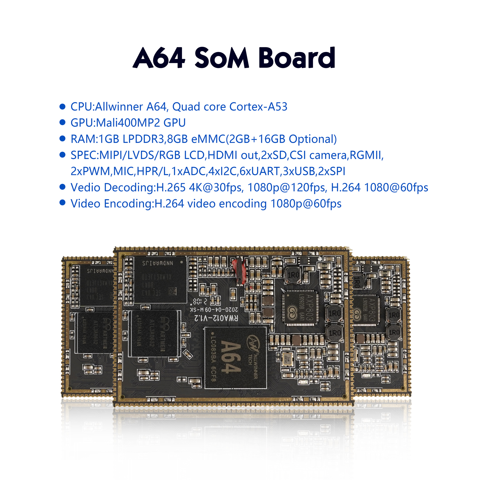| CPU | •Allwinner A64,quad Cortex-A53@1.2GHz |